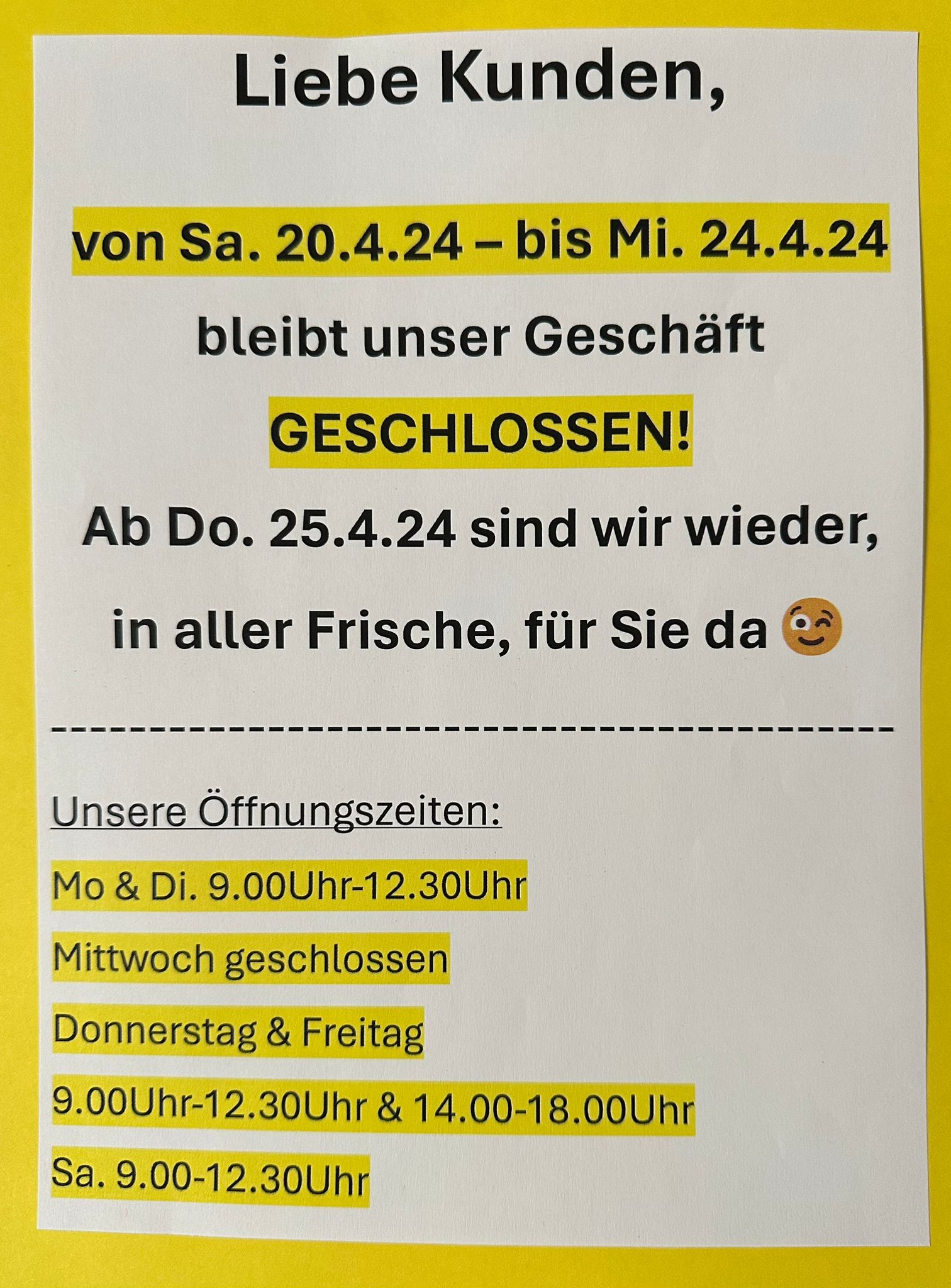 Öffnungszeiten Mai 24 Jürgen Klotz2024-05-01T12:14:23+02:001. Mai 2024| Möchten Sie den Beitrag teilen? Wählen Sie einen der Dienste aus. FacebookTwitterWhatsAppE-Mail Ähnliche Beiträge September 25 Geschlossen September 25 Geschlossen Sommerurlaub 2025 Sommerurlaub 2025 Samstag 12.07.25 GESCHLOSSEN !!! Samstag 12.07.25 GESCHLOSSEN !!! Geschenke von uns im SB – Lädele Schönebürg Geschenke von uns im SB – Lädele Schönebürg